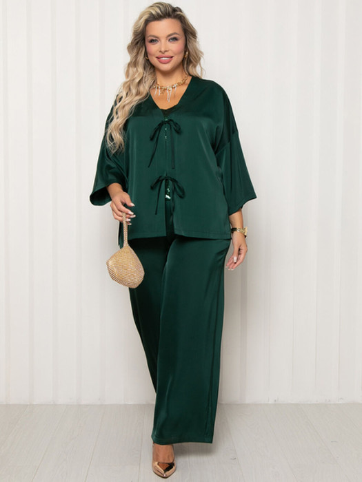Брючный костюм двойка, состоящий из блузки и брюк из шелка.