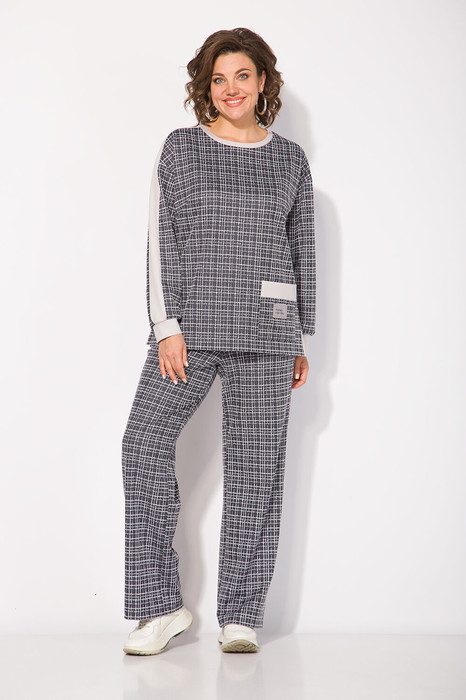 Этот стильный трикотажный костюм - идеальный выбор для современных женщин, ценящих комфорт и элегантность. Свитшот свободного силуэта с округлым вырезом горловины. Линия плеча спущена. Рукав полной длины с манжетами по низу. Ассиметричные лампасы по рукаву и боковому шву придают изделию оригинальный вид. Накладной карман украшен нашивкой-шевроном в тон изделию. В комплекте идут прямые брюки на круговой резинке, с боковыми карманами, обеспечивают свободу движений и удобство в носке, а эластичный трикотажный материал приятно облегает фигуру.