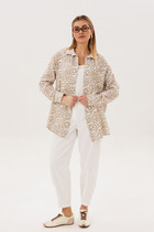 Трендовая блузка из легкой сетчатой ткани c эффектом мерцания станет стильным дополнением вашего гардероба. Ее можно комбинировать с различными элементами гардероба, накинуть поверх платья или топа. Модель выполнена с воротником-стойкой, который добавляет элегантности образу. Застежка центральная на петли и пуговицы. По бокам расположены разрезы. Свободный крой обеспечивает комфорт и подчеркивает женственность. Длинный рукав с манжетами делает ее универсальной для любого сезона, а удлиненный силуэт добавляет изысканности. В комплект входит съёмный пояс с декоративной бахромой, который может служить в виде шарфика и добавить элегантность образу.