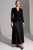 Юбка на притачном поясе с резинкой. Переднее полотнище с наклонными карманами к боковым швам и складками от пояса. Заднее полотнище с потайной молнией в среднем шве и складками от пояса. Юбка на подкладке.