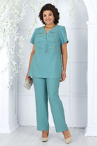 Джемпер с воротником стойкой. Перед с дизайнерскими отрезными деталями и с декоративной тесьмой и сеткой в верхней части. Спинка с талиевыми вытачками. Рукава втачные.