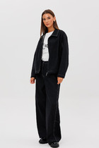 Брюки на поясе с резинкой. Передние половинки с наклонными карманами к боковым швам.