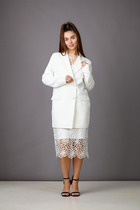 Юбка на притачном поясе. Передние полотнище с декоративной деталью с одной стороны. Спинка с потайной молнией и шлицей в среднем шве. Юбка на подкладке.