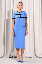 Комлект 2ка состоит из жакета и брюк. Жакет двубортный умеренного объёма из твидовой мягкой ткани. Застёжка на две пуговицы. По бокам расположены функциональные прорезные карманы с клапаном. Жакет на подкладке. Брюки среднего объема, слегка зауженного силуэта от бедер. На передних половинках с обеих сторон расположены под наклоном функциональные карманы. На задних половинках расположены вытачки. Пояс отрезной. На поясе расположены шлевки и отделочные паты. Застежка брюк – гульфик на молнии, на поясе крючок. Длина жакета по спинке 70-71 см. Длина брюк 109-110 см.
