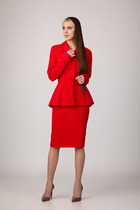 Комплект 2ка, состоящий из жилета и брюк. Жилет с отложным воротником и поясом. Перед жилета на запах с застёжкой на кнопки, на плечах декоративные паты. По бокам жилета выполнена имитация клапанов карманов. Брюки прямого силуэта на эластичной резинке по талии. По переду расположены карманы с наклонным входом.