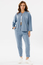 Костюм 2ка, состоящий из жакета и брюк.  Жакет двубортный умеренного объёма  приталенного силуэта с застёжкой на петли и пуговицы. По бокам расположены функциональные прорезные карманы с клапаном.  Жакет на подкладке.   Брюки умеренного объема, прямого силуэта. На передних половинках брюк заутюжены стрелки, переходящие в складки по линии талии. На задних половинках также заутюжены стрелки. По бокам расположены функциональные карманы. Застежка-гульфик. Пояс отрезной, притачной. На пояс настрочены шлевки. Пояс застегивается на петлю и крючок.                                                                                                                                                                 Рост фотомодели 175 см. Размер у фотомодели – 44.                             СОВЕТ  ОТ СТИЛИСТА: для прохладных дней надевайте под жакет водолазку , а из обуви можно подобрать кеды или ботинки на платформе. Для более романтичного образа советуем укомплектовать блузкой из нашей коллекции , а из обуви подобрать ботильоны на каблуке.