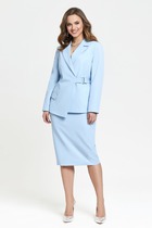 Костюм, состоящий из жакета и брюк. Жакет прямого силуэта с фигурным низом из трикотажного полотна. Горловина округлая, по центру застежка на кнопки. Рукав со спущенной линией плеча. По переду накладные карманы. Жакет без подкладки. Обращаем ваше внимание, что фурнитура может отличаться от фото.
