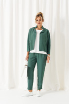 Стильный яркий комплект пижамного типа. Выполнен из нежного комфортного штапеля. Блуза рубашечного кроя с центральной застежкой на пришивные пуговицы.  Воротник отложной, рукав слегка спущен. Брюки свободного  прямого кроя с притачным поясом, дополненным эластичной тесьмой. По бокам расположены  удобные карманы.  Длина блузы от плечевого шва 76см. Длина рукава 20 см. Длина брюк по боковому шву 106см.