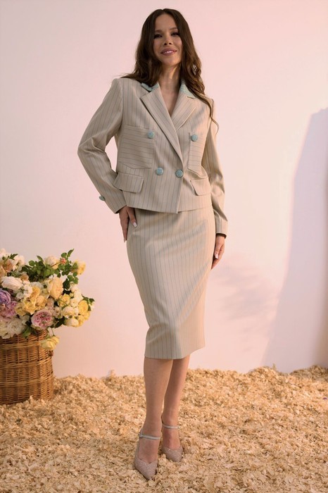 Костюм Magia mody 2619 серо-бежевый в бирюзовую полоску