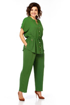 Стильный компект из жакета и брюк. Двубортный жакет выполнен из костюмной ткани в комбинации с темно-синим джинсом. Жакет на подкладке с застежкой на пришивные пуговицы. Рукав втачной, дополнен манжетой из джинса. Воротник отложной. Брюки классического прямого кроя с притачным поясом, выполненным из джинса, дополненным эластичной тесьмой. Посадка средняя. Дополнены удобными боковыми карманами. Застежка гульфик на молнию и пришивную пуговицу. Брюки выполнены из комфортной костюмной ткани. Длина жакета от плечевого шва 58см. Длина рукава 60см. Длина брюк по боковому шву 104см.
