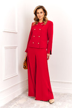 Комплект женский, состоящий из жакета и юбки. Жакет прямого силуэта на подкладке. Спинка со средним швом и вытачками из плеча. Сререди на полочке кокетка. Рукав длинный двухшовный. Застежка в стык на два потайных крючка, воротник стойка. На спинке, полочке и рукавах принт. Юбка: Юбка прямая зауженная к низу на обтачке. Перед с четырьмя талиевыми вытачками, задняя полотнище с четырьмя талиевыми выточками и средним швом, вверху которого выполнена потайная молния, внизу шлица. Юбка на подкладке.
