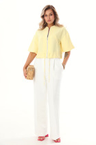Универсальный и удобный женский брючный костюм для любого повода ,из мягкого материала с эффектом легкой мятости ,что предает шарм изделию . Жакет свободный укороченный с цельнокроенным рукавом длиной до локтя, по низу с отворачивающимся манжетом. Перед жакета с ассиметричной косой застежкой на навесные петли с пуговицами. Брюки-шаровары длиной 7/8, по верху с поясом на резинке. Имеются боковые карманы в швах. Также по талии (переда) двухвстречные складки, по низу передних и задних половинок односторонние складки, придающие пышность брюкам. Комплект смело сочетается с любой обувью. Длина жакета по спинке 57 см, длина рукава от горловины 33 см. Длина брюк по боковому шву 95 см, по шаговому 64 см. Изделие подойдет на рост 170 см.