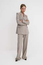 Длина жакета по спинке 52 см +\- 1 см, длина рукава 62 см +\- 1 см, длина юбки по боковому шву 95 см +\- 1 см. Изделие подойдет на рост 170 см.
