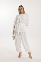 Брюки: Ширина бедер -59см, Ширина талии- 38см Длина блузы 72см, длина брюк по боковому шву 104см, длина брюк по внутреннему шву 75см
