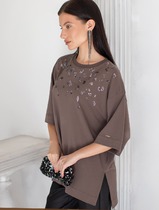 Футболка оверсайз с принтом пайетками из премиального хлопка с эластаном