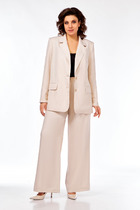 Комплект женский , двух предметный состоящий из туники и брюки. Туника прямого силуэта выполнена из трикотажного полотна « в полоску» . Горловина переда обработана обтачкой. Линия плеча спущена . По переду авторская термопечать. Рукав втачной, двухошовный, по переднему шву рукава сборка. По низу изделия и рукава приточная манжета. Длина изделия по спинке- 63 см, длина рукава от горловины – 64 см. Брюки прямого силуэта на притачном поясе, с застежкой на тесьму- молнию и 1 пуговицу и петлю, с боковыми наклонными карманами на передних половинках брюк . По передним и задним половинкам брюк заутюжен кант. Для лучшего прилегания брюк в области талии в поясе по бокам вставлена резинка. Длина брюк по боковому шву без пояса- 102 см.