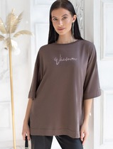 Футболка оверсайз с принтом стразами из премиального хлопка с эластаном