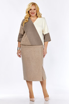 Костюм женский, состоящий из жилета и брюк. Жилет полуприлегающего силуэта, без подкладки. Плечо спущенное.Вырез V - образный, с воротником стойкой. по переду иммитация карманов с клапаном. Центральная застежка на пришивные кнопки. Спинка со средним швом и вытачками. Брюки прямого силуэта, слегка зауженные к низу. Пояс частично на резинке (по бокам), с шлевками для ремня. Застежка на гульфик с молнией и внутренним крючком. По бокам боковые карманы с косым входом, сзади декоративные прорезные карманы «в рамку». Материал костюма костюмный, средней плотности, с гладкой фактурой. Без подкладки. Дополняет модель широкий пояс.