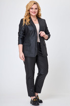 Костюм женский состоит из жакета и юбки выполнены из плащевой ткани. Жакет свободный с цельнокроеными рукавами, без подкладки, по низу притачная планка, в которую продета резинка. По переду горизонтальный подрез, прорезные карманы с листочкой , клапан с кнопкой, молния и застёжка на тесьму молния. Воротник стойка. По низу рукава резинка и застёжка небольшая молния. Юбка прямого силуэта на притачном поясе на резинке с фиксирующей затяжкой. По переду центральный шов заканчивается разрезом. Горизонтальный подрез по переду и спинке. По бокам большие накладные карманы с клапанами на кнопках. Юбка на подкладке.