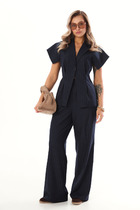 Создать нарядный образ с брюками легко! Легко это осуществить с нашей новинкой. Костюм состоит из блузы и юбки-брюк. Используемый материал тонкий, струящийся трикотаж, имеющий в составе ангору. Блуза свободного кроя, “летучая мышь”, по низу с перепадом длины. Перед декорирован акцентным дизайнерским цветком из органзы. Юбка-брюки свободного кроя с резинкой на талии.