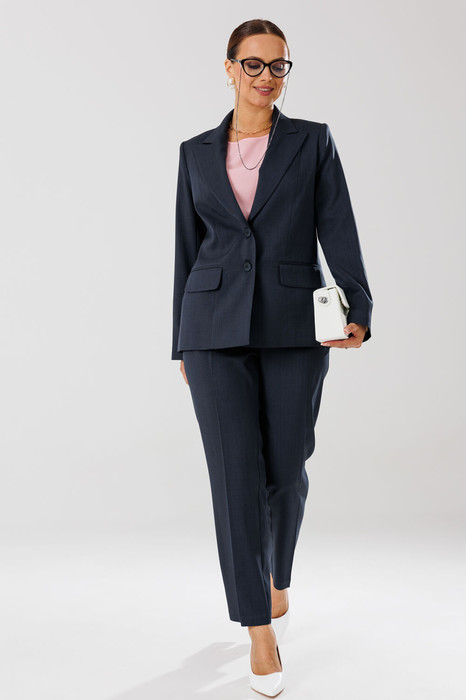 48р – жакет – ОГ 108, ОТ 102, ОБ 116, ширина рукава 39; блуза – ОГ 110, ОТ 102, ОБ 110; брюки – ОТ 84/100, ОБ 112