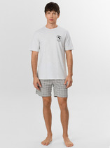 Костюм мужской из плотного гладкокрашеного трикотажного полотна "кулирка", состоящий из футболки и шорт. Футболка - свободного покроя, с удлиненными плечевым и швами, короткими втачными рукавами и горловиной овальной формы, обработанной втачной планкой. В нижней части переда слева настрочен декоративный элемент прямоугольной формы. По горловине проложена отделочная строчка. Шорты - классического покроя, на притачном поясе с эластичной тесьмой внутри и карманами в боковых швах. Для регулирования степени прилегания шорт по талии в пояс вставлен шнурок, продетый через две петли в центре пояса.