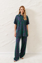 Костюм двухпредметный: состоит из жилета и юбки. Жилет двубортный прямого кроя объёма оверсайз. Застёжка фигурная на кнопки. Карманы - листочки. Роскошная юбка - солнце миди с узким поясом. В боковых швах расположены карманы. Застёжка на петли и пуговицы с цельнокроеной планкой.Длина около 94 см. Изделие без подкладки.