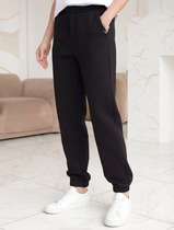 Костюм двухпредметный: состоит из жакета и брюк. Жакет прямого силуэта с имитацией центральной застёжки на пуговицы. Рукав втачной одношовный, длиной три четверти,застегивающийся на пату. Воротник пиджачного типа . Линия низа фигурная, симметричная . Брюки свободного кроя, верхний срез представлен широкой резинкой, с карманами. По центру правой брючины расположена планка с функционирующими петлями и пуговицами.