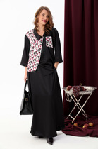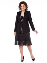 Комплект женский, 2-х предметный, состоящий из платья и кардигана, выполненных из костюмно-плательной ткани в сочетании с гипюром.
