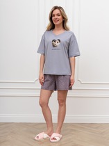 Комплект брючный 2-х предметный, состоящий из блузки и брюк. Блузка полуприлегающего силуэта, выполнена из вискозного полотна. Модель с плечевыми накладками и разрезами в боковых швах. Перед декорирован вставками с застроченными вертикальными защипами и отрезными фигурными планками, застегивающимися на 3 петли и 3 пуговицы. От планок к швам притачивания вставок направлены навесные петли, застегнутые на пуговицы. Спинка со средним швом; круглая горловина спинки обработана отрезной фигурной бейкой. Рукав короткий, втачной. Длина блузки – 66,5 (46-50 р-р) см, 69 см (52-60 р-р); длина рукава – 19,5 см (46-50 р-р), 20,0 (52-60 р-р) см. Брюки классические, с посадкой на талии, выполнены из вискозного полотна. Модель с центральной застёжкой на тесьму-«молнию», на притачном поясе, застегивающемся на петлю и пуговицу. Передние и задние половинки брюк с талиевыми вытачками, направленными от пояса вниз. Спереди обработаны боковые наклонные карманы. Для лучшего прилегания брюк в области талии в поясе по задним половинкам вставлена эластичная лента. Длина брюк по боковому (с поясом) – 101,5 см (46-50 р-р), 102,5 см (52-54 р-р), 103,5 см (56-60 р-р).