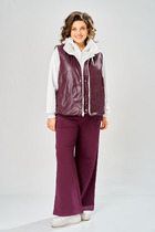 Комплект женский, состоящий из жакета и платья. Укороченный жакет полуприлегающего силуэта на подкладке. Деталь переда с двумя талевыми вытачками и с фигурным подрезом около горловины. Спинка со средним швом и рельефами, выходящими из проймы вниз. Рукава втачные, двухшовные, длиной 48,0 см., с разрезом по локтевому шву. Горловина углубленная, круглая, обтачная. Борта круглые, застежка на навесную петлю-пуговицу. Изделие с плечевыми накладками. Платье полуприлегающего силуэта, отрезное по линии талии. На детали переда рельефы выходят из проймы, проходят через центр груди вниз. Спинка цельнокроеная, с талевыми выточками. Юбка широкая к низу, с тремя клиньями спереди и сзади. Посередине каждого клина зашиты встречные складки. В левом боковом шве обработана застежка на потайную тесьму молнию. Рукава втачные, одношовные. Горловина углубленная, обтачная, с вырезом в виде “капельки” посредине переда. Углы выреза скреплены украшением. Пояс отлетной, обтачной, из двух цветов ткани, с перекантом на лицо и с застежкой на петлю-пуговицу сзади. Изделие с плечевыми накладками.