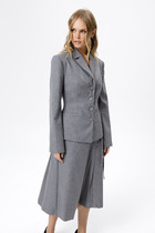 Брюки классические, длинные, с посадкой на талии, выполнены из костюмно-плательной ткани. Модель со стрелками. Передние и задние половинки брюк с талиевыми вытачками, направленными от пояса вниз. Спереди обработаны наклонные боковые карманы и центральная застёжка на тесьму-«молнию». Притачной пояс застегивается на 1 петлю и 1 пуговицу; для лучшего прилегания по линии талии в притачном поясе предусмотрена эластичная лента, вставленная по спинке. Длина брюк по боковому (с поясом) – 107 см (50-52 р-р), 108 см (54-58 р-р).