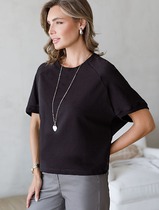 Накидка свободного кроя, выполнена из гипюра. Модель с асимметричным низом: укороченная спереди и удлиненная к центру спинки. В среднем шве спинки обработан вырез «капля» с застежкой по горловине на пуговицу и навесную петельку. Длина накидки (по середине спинки) – 71 см (50-58 р-р).
