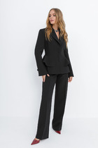 В этом костюме каждая деталь продумана так, чтобы создавать ощущение безупречного стиля и лёгкой роскоши. Мягкое мерцание люрекса делает образ выразительным и дорогим, а утончённый крой подчёркивает женственность и гармонию силуэта.