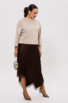 Праздничный женский костюм-тройка — гармоничное сочетание элегантности, комфорта и идеальной посадки для женщин с выразительными формами. Модель создана для тех, кто ценит стиль и практичность: она подходит как для торжеств, так и для деловых мероприятий. Главное украшение комплекта — нарядный гипюровый кардиган с фестонами по краю рукавов. Прозрачная текстура изящно подчеркивает фигуру, а насыщенный цвет добавляет образу свежести и праздничности.
