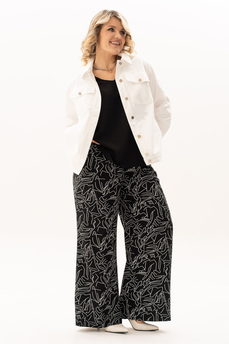 Стильный, современный, трендовый комплект с брюками для повседневной носки, торжественного мероприятия, в офис, школу или на прогулку. Приобретая один комплект, Вы покупаете несколько образов, каждая единица которого универсальна, поэтому может сочетаться со многими вещами из Вашего гардероба. Стильный вариант для красивого женского образа – сочетание белого джинсового жакета с брюками прямого кроя "палацо" из принтованной ткани и контрастной майкой. Жакет-куртка прямого кроя с рельефными швами и кокетками по переду и спинке, накладные карманы с клапанами и декоративные металлизированные пуговицы - узнаваемые нотки вневременной джинсовой мелодии. Жакет просто необходим при создании как романтического, так и спортивного образа. Майка с рукавом «крылышко», горловина углубленная V-образной формы. Брюки с боковыми карманами и поясом частично на резинке. Не упустите возможность приобрести брючный комплект с большим выбором размеров и ощутить комфорт в носке качественной и стильной одежды!