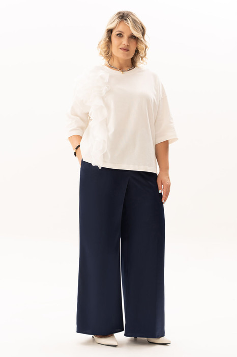 Нарядно-повседневный комплект, состоящий из  блузки   с пришивным цветком и атласных брюк палацо  идеально подойдет для создания ярких и стильных образов в любое  время года. Он  выделяется своим уникальным и запоминающимся дизайном, который не оставит равнодушной ни одну модницу.Блузка  изготовлена из легкой и приятной к телу ткани,  обеспечивает комфорт и удобство во время ношения. Почему она покорит твоё сердце: мягкий дышащий хлопок , универсальный крой , элегантные детали, легко сочетается: с джинсами, юбкой или шортами — образ готов за 5 минут! Женская блузка - универсальный предмет гардероба, который подойдет для любого случая— от повседневных до вечерних . Молочная  расцветка подойдет под любой стиль и цветовую гамму, а оверсайз крой добавит  небрежности и удобства в носке. Брюки с широкими штанинами палаццо выгодно подчеркивают женственные формы, а свободный крой обеспечивает удобство в любой ситуации. На брюках обработаны карманы в боковых швах, по талии пояс с застежкой на молнию  и частично на резинке. Красивая двойка  — идеальное сочетание для торжеств и даже для делового офисного дресс кода. Подходит для женщин больших и полных размеров, продуманный крой визуально стройнит, подчёркивает талию и скрывает лишнее. Создайте идеальный образ — выберите стильный женский нарядный костюм с брюками палаццо и подчеркните свою индивидуальность!