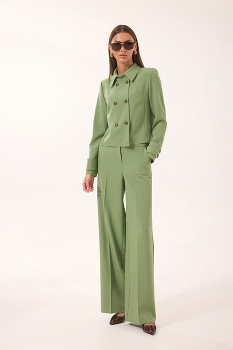 Комплект женский прямого силуэта, втачного покроя с полуторабортной застежкой. Комплект состоит из жакета и брюк.