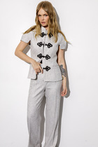 Длина жакета 67см, длина рукава 40см, длина блузки 62см, длина брюк 109см