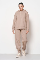 Комплект женский, состоящий из жакета и брюк, выполнен из костюмной ткани.