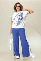 Длина блузы по спинке около 69 см в размерах 40-46 и около 71 см в размерах 48-52, длина рукава+ спуск плеча около 50+12 см. Длина брюк по боковому шву с поясом около 104 см в размерах 40-46 и около 105,5 см в размерах 48-52, длина по внутреннему шву около 77,5 см