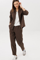 Длина жакета по спинке в размерах 40-46 около 67 см, в размерах 48-52 около 70 см, длина рукава около 61 см. Длина брюк по боковому шву с поясом около 109,5 см, длина по внутреннему шву около 83 см
