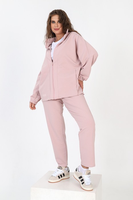 Костюм женский из трикотажного полотна «футер-двунитка» в единой цветовой гамме, состоящий из куртки и брюк.
