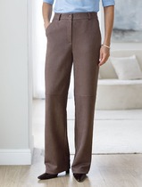 Костюм женский состоящий из блузы и брюк. Блуза свободного силуэта с центральной застежкой на петли пуговицы. Рукав цельнокроеный широкий, длиной от горловины 51 см. Воротник стояче-отложной. По боковым швам расположены 2 разреза. Брюки свободного силуэта, широкие без бокового шва. Верх брюк на подкладке с цельнокроеным поясом на резинке. Длина изделия – 79 см, длина брюк по боку – 120 см