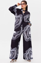 Блузка и юбка, выполнены из вискозного полотна. Блузка прямого кроя, горловина с рубашечным воротником на отрезной стойке, центральная застежка на петли и обтяжные пуговицы. Рукава втачные с манжетами с застежкой на пуговицы. В боковых швах обработаны разрезы. Спинка с отрезной кокеткой и встречной складкой.