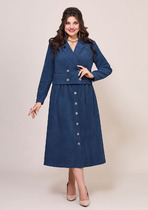 Комплект 2-предметный, состоящий из жакета и брюк, выполненный из костюмной ткани. Жакет прямого силуэта, с центральной застежкой на петлю и пуговицу. Воротник пиджачного типа с отложными лацканами. Спереди обработаны накладные карманы. Рукава втачные, двухшовные. Жакет на подкладке. Брюки прямого силуэта слегка зауженные к низу, с заутюженными стрелками и с боковыми наклонными карманами. Застежка на пуговицу и тесьму-молнию. Пояс притачной на резинке для регуляции размера. На задних половинках брюк обработаны карманы с листочками.