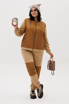Брюки с посадкой на талии и защипами от пояса, с заутюженными стрелками и с боковыми наклонными карманами. Пояс притачной с застежкой на пуговицу и тесьму-молнию, по спинке пояс на резинке для регуляции размера.