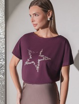 Костюм – молодежный из трикотажного полотна «кулирка» в комбинации двух видов: с набивным рисунком и гладкокрашеного в единой цветовой гамме, состоящий из футболки и шорт. Футболка - из гладкокрашеного полотна, классического покроя, с короткими втачными рукавами, горловиной овальной формы и принтом на полочке, выполненным в технике «шелкографии». Горловина обработана притачной бейкой из основного материала.Шорты – из полотна с набивным рисунком, средней длины, свободные, с карманами в боковых швах, на притачном поясе с эластичной тесьмой внутри.
