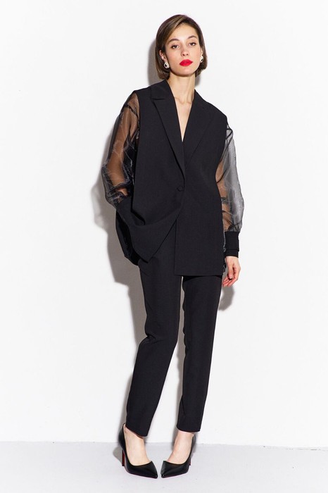 -линия плеча спущена, рукава одношовные, втачные, длинные