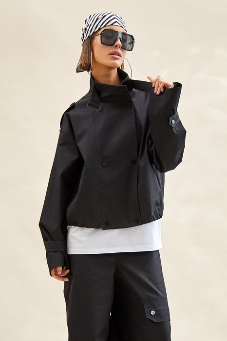 - воротник-стойка с патами, застегивающимися на прямоугольную пряжку;